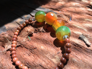 Faceted natural stone green agate and goldstone stretch stack bracelet