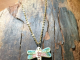 A beautiful 1x1 inch double sided dragonfly with cute little details in burgundy and teal. The vintage brass chain with a lobster claw clasp is about 18 inches.