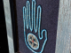 This design was inspired by an artifact discovered at the Hopewell site mound 25 in Ohio by moundbuilders between A.D. 1-400. It is speculated that this elegant shaped piece carved from a thin layer of mica was intended for ceremonial use. The antique white opalescent beads that were chosen for the outline of the hand were to mimic the beautiful glow of mica. The center design was added with precious, pristine and bright beads to emphasize the symbol's importance through the ages.