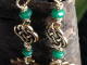 beautiful, elegantly wire wrapped faceted emerald beads and celtic knots to adorn in every setting. Wear them every day with jeans or with that little black dress! About 2 3/4 inches long and oh so delicious!