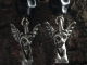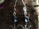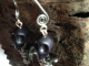 Silver gargoyle and onyx skull bead dangle earrings on spiral silver filled ear wires