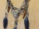 Mixed metal, carved stone and magnesite teeth lanyard necklace and earring set